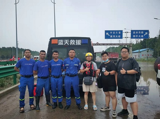崔鹏(右三)参加郑州“7·20”特大暴雨救援行动