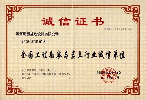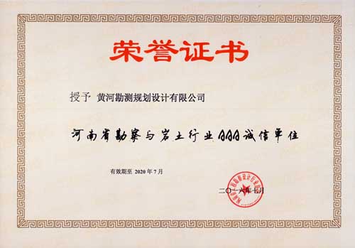 全国工程勘察与岩土行业诚信单位河南省工程设计行业AAA证书